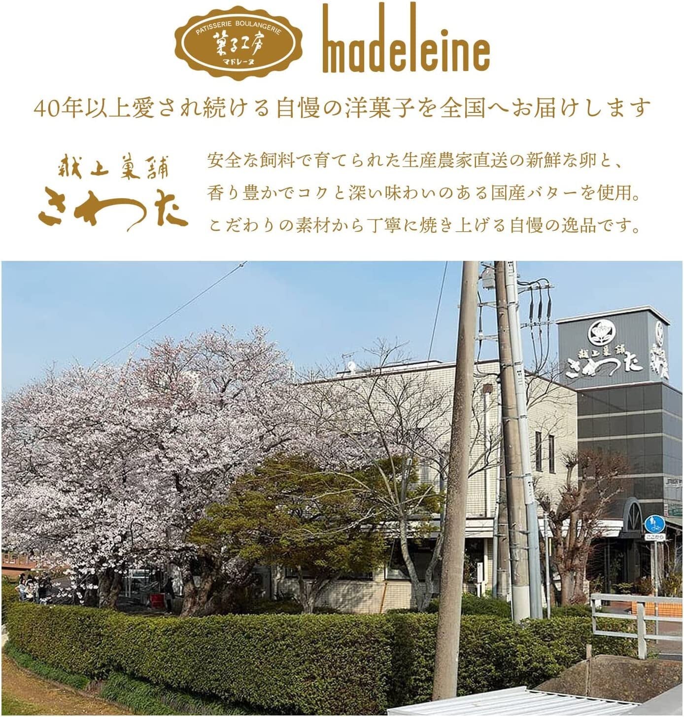 ✅創業は大正3年。香取市で製造、直売。「さわた」のマドレーヌは40年以上愛されている自慢の洋菓子で、上質の卵とバターをふんだんに使い、こだわりの手法で焼き上げました。お口に広がるバターとバニラの風味をお楽しみください。